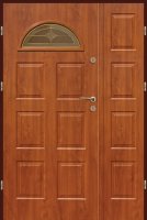 Produkowane w Polsce stalowe drzwi zewnętrzne dwuskrzydłowe doskonale prezentują się jako drzwi wejściowe w budownictwie jednorodzinnym.