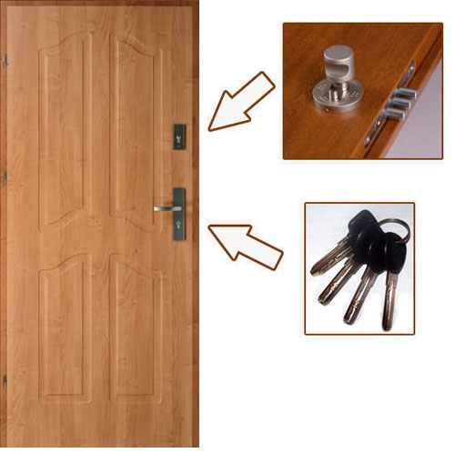 Powierzchnię drzwi uszlachetniono folią PCV 0,35 mm zabezpieczającą drzwi przed negatywnym wpływem wilgotności oraz uszkodzeniami mechanicznymi.