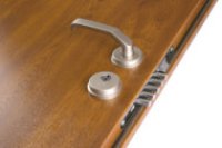 W wyposażeniu standardowym drzwi zastosowano 2 atestowane zamki: centralny – klasa C i 5 (9 rygli ruchomych), dodatkowy – klasa 7, rozetę antywłamaniową – klasa 4, wkładkę dolną atestowaną klasa B, wkładkę górną z pokrętłem klasa A, 3 bolce antywyważeniowe oraz odpowiednio wyprofilowaną ościeżnicę w kolorze płata drzwi.