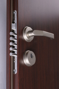 W wyposażeniu standardowym drzwi zastosowano 2 atestowane zamki: centralny – klasa C i 5 (9 rygli ruchomych), dodatkowy – klasa 7, rozetę antywłamaniową – klasa 4, wkładkę dolną atestowaną – klasa C, wkładkę górną z pokrętłem – klasa A, 3 bolce antywyważeniowe oraz odpowiednio wyprofilowaną ościeżnicę w kolorze płata drzwi.
