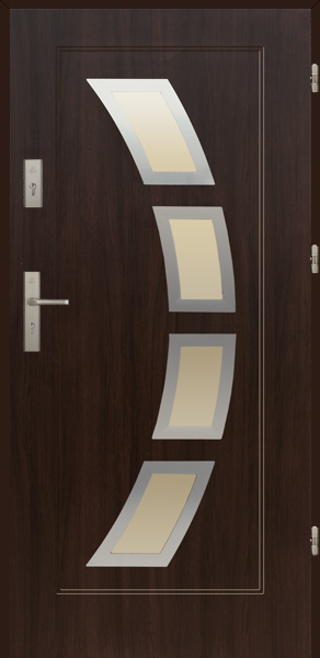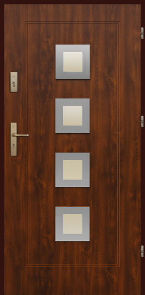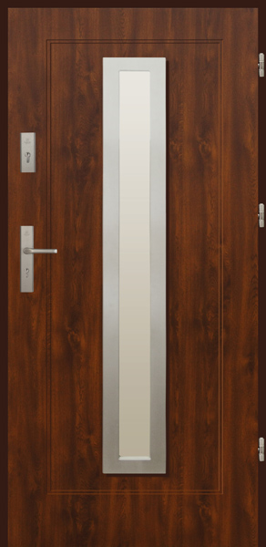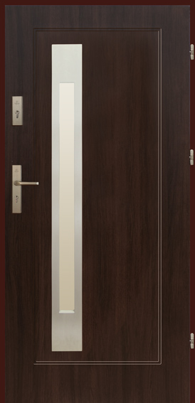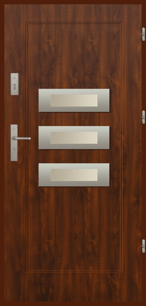 W produkcji drzwi zastosowana została wysokiej klasy blacha stalowa ocynkowana pokryta wielowarstwowo laminatem drewnopodobnym, odpornym na warunki atmosferyczne i promienie UV.