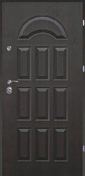 PN-EN 14351-1 wraz z możliwością przeszkleń. Skrzydło o grubości 56 mm zbudowane jest z blachy stalowej (grubości 0,5-0,7mm) pokrytej laminatem PCV w kolorach drewnopodobnych, wypełnione styropianem oraz wyposażone w dwa zamki w tym podklamkowy (na wkładkę zębatkową) DELTA DD6H/Z klasy C i klasy 7.