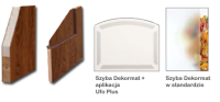 • ramka PCV lub MDF w kolorze drzwi, przeszklona szybą typu Dekormat,