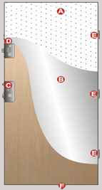 Konstrukcję wewnętrzną drzwi stanowi samogasnący styropian pokryty stalową blachą ocynkowaną. Skrzydło laminowano okleiną o kolorze drewnopodobnym. Ościeżnica z uszczelką wykonana jest z blachy ocynkowanej.